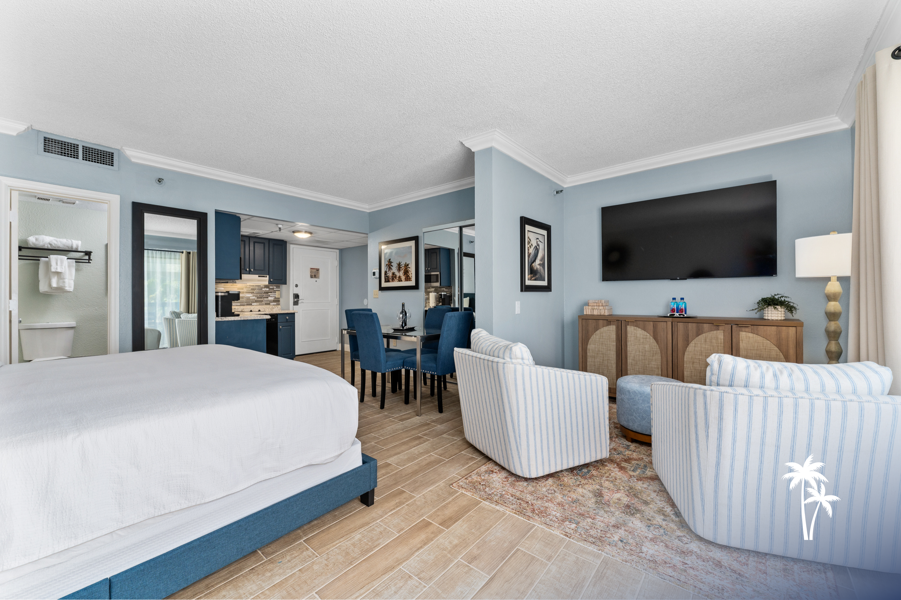 Condo Amenities: -King bed -Free high speed streaming Wifi - suitable for working -Central air conditioning -Roku TV to watch your favorite steaming service -K-cup coffee maker with a couple of K-cups & tea bags to get you started -Closet with hangers -Kitchenette with cooking essentials -Hotel quality bath amenities (shampoo, conditioner, body wash, hand soap) -Dish & laundry detergents -Hair dryer -Iron & ironing board -Bath & pool towels *This condo is located on the 3rd floor in Building 3, property map available in "Additional Photos" section.